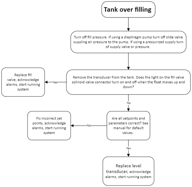 Follow the flow chart to resolve an overfilling tank.