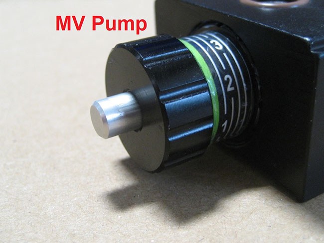 - Try cycling the pumps at different stroke lengths. While the pump is running at a lower cycle rate (20-30 cycles per minute), screw the stroke adjustment knob all the way out for standard style pumps (brass adjustment knob) and then all the way back in, or all the way in for MV style pumps (black anodized aluminum adjustment knob) and then all the way back out.