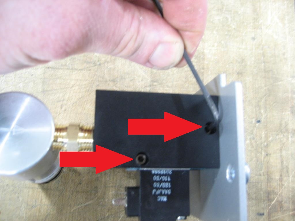 Use a 2.5mm hex key to remove the two valve stack retaining screws from the top of the manifold block, disassemble the valve stack and remove the old valve.