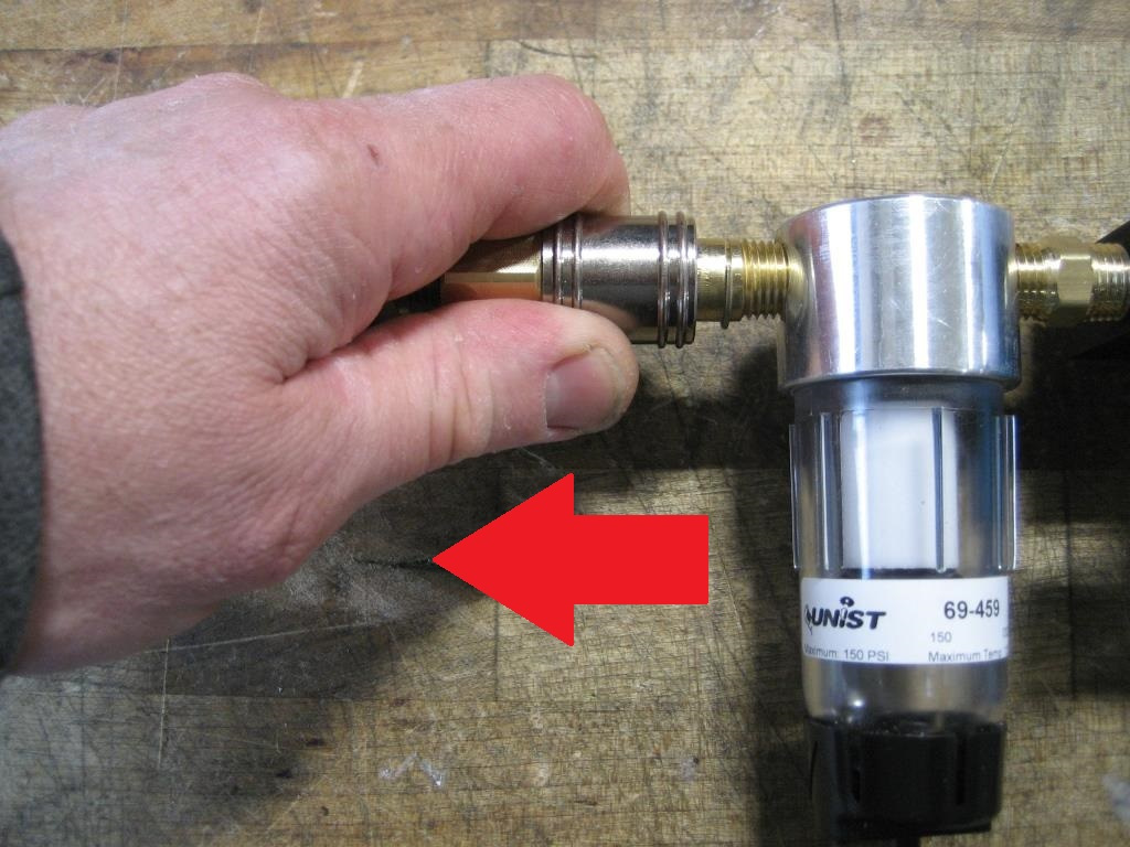 First begin closing the slide valve (if equipped) and disconnecting the pressurized air line on the system.