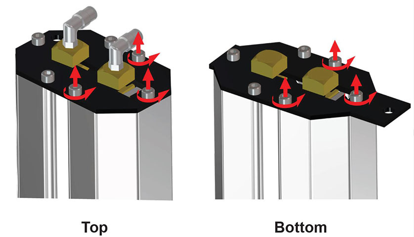 Loosen the bottom 3 bolts on one endplate.