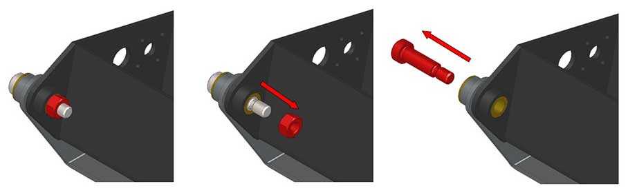 Standard version: Remove the pivot pins, taking care to also remove the brass washers.