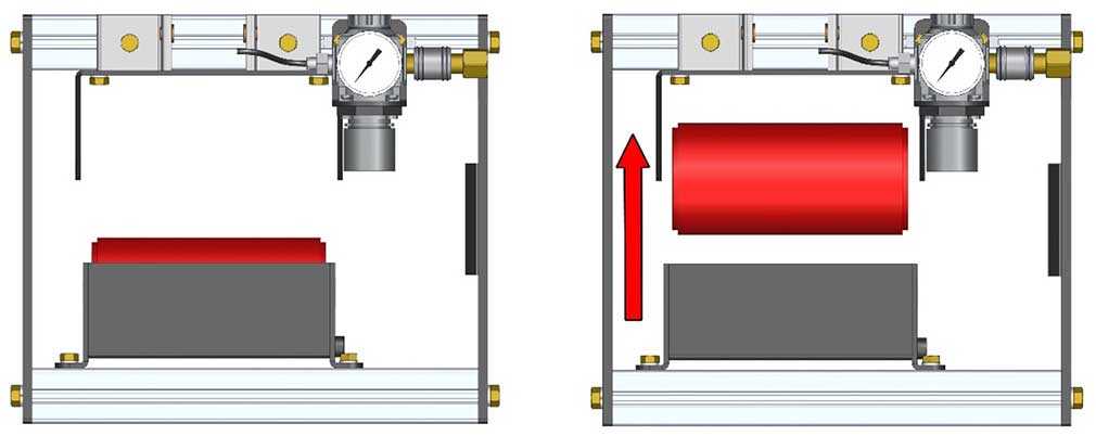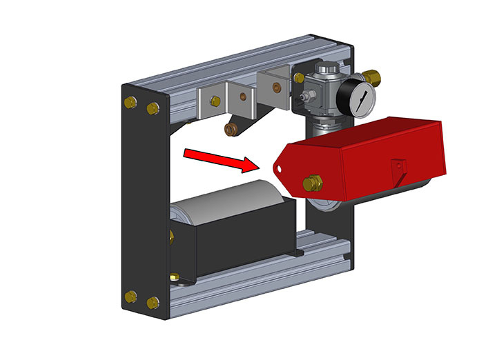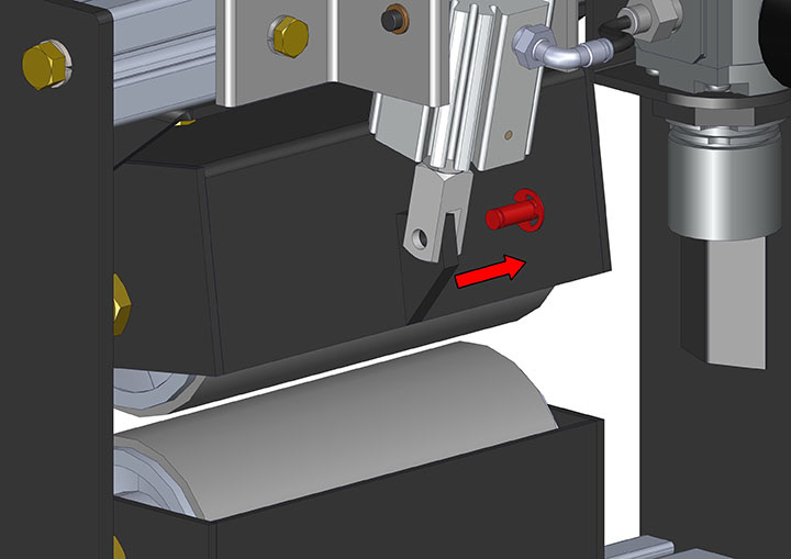 Note: On multiple roller set units, take care to note which upper roller carrier came from each pivot bracket. Not doing so could cause misalignment of the air cylinder upon re-installation and may require loosening of cylinder mounts to re-align the cylinder, and retightening.