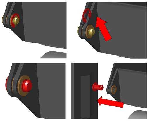 - Install the E-clips on both pivot pins, or the nuts on the shoulder bolts if have HD version.