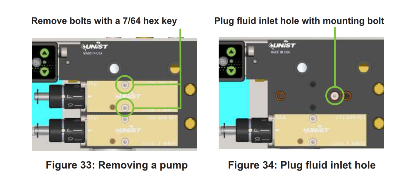 2. Remove the two pump-mounting bolts on the front of the pump using a 7/64 hex key.