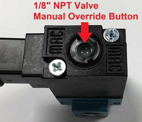 Reapply air pressure to the valve inlet and press the manual override button on the valve several times to see if a change in operation occurs.