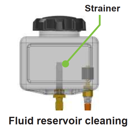 Each fluid reservoir contains an internal 259-micron strainer. When refilling the reservoir, ensure any dirt or debris is removed to prevent contamination. Clean the strainer as needed to maintain proper fluid flow.